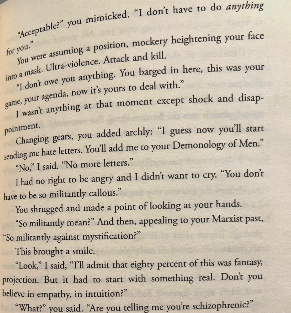 A tells me there's a pattern to our "arguments," which feels like a finger pointed at me for looking inward first at all times. ("Arguments" because I didn't know one could argue calmly, accompanied by shared meals & sex.) I'm quick to blame myself for my feelings, shut my mouth, & leave the apartment with not much explanation. I don't wonder how annoying this can be–– I know it is. I write desperately in real-time but information doesn't expand much. No text, no update, no pretending like nothing happened. Just an unprovoked Icelandic artist trying to convince me that all tech bros are drug addicts & psychopaths (ungodly timing). It stings to sit in silence & recognize that I am upset with him in several ways. It's painful to admit that someone who loves me can lack consideration for me sometimes. But it's even more painful to accept that I can be hurt. That I can be so butthurt about some crude jokes, some lack of gentleness.